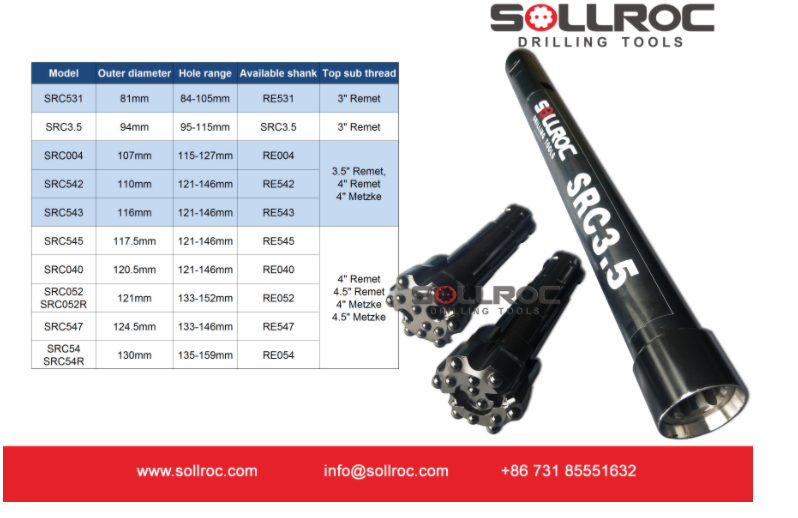 SOLLROC Reverse Circulation drilling (RC) ,from size 3’’ to 5.5’’, is a technique of drilling that uses dual wall drill rods that consist of an outer drill rod with an inner tube. By using compressed air to extract rock fragments sample,the samples travel through rods to a sample splitter at surface, avoiding all contact between the samples and the borehole wall that allows samples to be retrieved with minimal contamination,which is mainly used in deep hole exploration and mining grade control.
